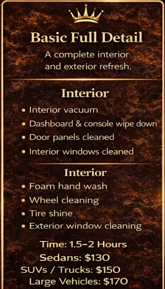 A full car detailing service in Daytona Beach, FL is a complete cleaning and restoration process designed to make your vehicle look and feel like new again. Unlike basic washes, a mobile full detail includes both interior and exterior car detailing, ensuring every part of your vehicle receives professional attention. This service typically includes a thorough hand wash, wheel cleaning, wax protection, interior vacuuming, carpet shampoo, surface cleaning, and odor removal. With complete car detailing in Daytona Beach, Do it Right Detailing LLC focuses on restoring the vehicle’s appearance from top to bottom while protecting the paint and refreshing the interior.